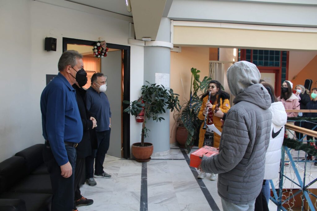 Τα πρώτα κάλαντα τα άκουσε ο Δήμαρχος από τους μαθητές του Διαπολιτισμικού Γυμνασίου Ευόσμου που έψαλαν τα κάλαντα συνοδεία μουσικών οργάνων, σκορπίζοντας τη μαγεία των Χριστουγέννων σε όλο το κτίριο, ενώ ακολούθησε η καλλίφωνη χορωδία του Συλλόγου Μικρασιατών Ευόσμου, δίνοντας μια ξεχωριστή νότα παράδοσης με τα κάλαντα της Μικράς Ασίας. Μελομακάρονα και γλυκίσματα ήταν τα κεράσματα που προσφέρθηκαν, ενώ οι ευχές για “Ευλογημένα Χριστούγεννα και Καλές Γιορτές” συνέθεσαν το εορταστικό σκηνικό, με την ελπίδα όλων ότι σύντομα η ανθρωπότητα θα απαλλαγεί από τον εφιάλτη της πανδημίας