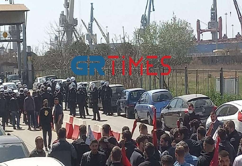 Ένταση και επεισόδια μικρής έκτασης σημειώθηκαν έξω από την Πύλη 14 του Λιμανιού, στη Θεσσαλονίκη, λίγο μετά η 1 το μεσημέρι της Τετάρτης.