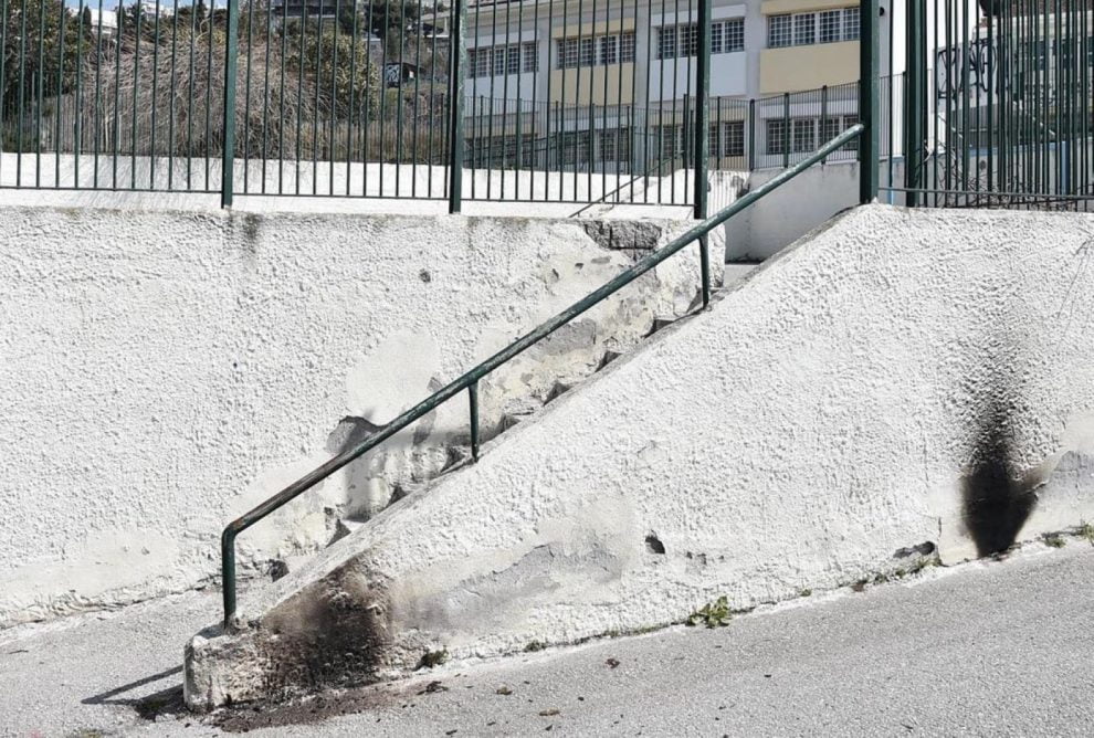 Τα τεκμήρια της επίθεσης εντόπισε το πρωί η διευθύντρια Βασιλική Πεσλή κατά την προσέλευσή της στο σχολείο, η οποία και ειδοποίησε άμεσα τη διοίκηση του δήμου και την Ασφάλεια, άνδρες της οποίας περισυνέλεξαν τα υλικά.