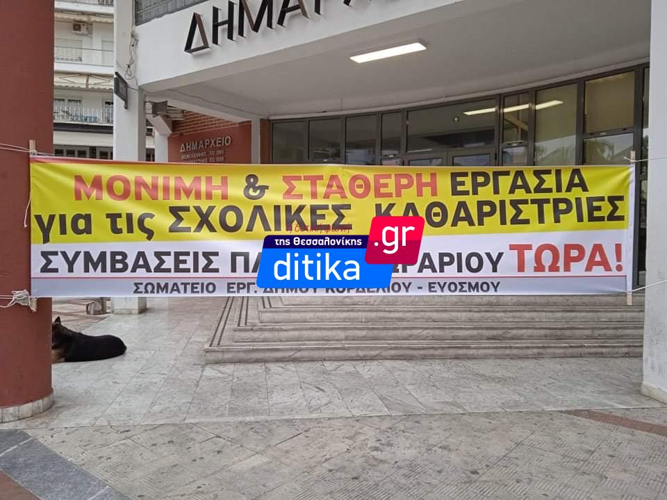 Παράσταση διαμαρτυρίας έξω από το δημαρχείο Κορδελιού-Ευοσμου πραγματοποίησαν το πρωί της Τετάρτης σχολικές καθαρίστριες του δήμου που ζητούν μόνιμη και σταθερή εργασία και συμβάσεις πλήρους ωραρίου.