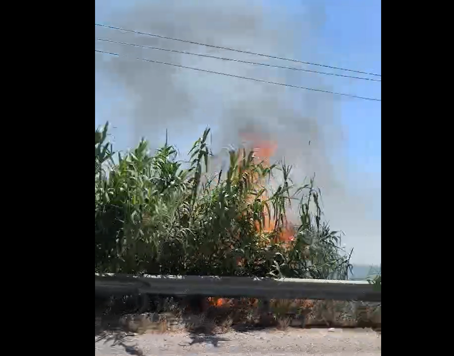 Η πυρκαγιά καίει στο πρανές του δρόμου, πριν τα Μάλγαρα με κατεύθυνση προς Θεσσαλονίκη.