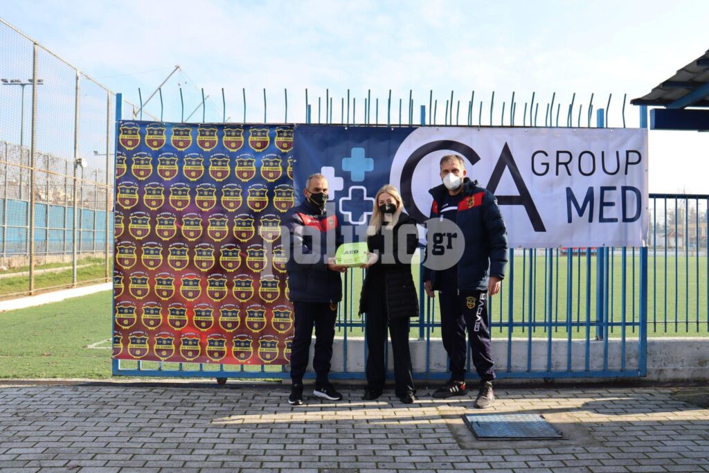 Τον απινιδωτή παρέλαβαν οι υπεύθυνοι της Αθλητικής Ένωσης, ο κ. Αποστόλης Μπαλάσκας, υπεύθυνος αντρικού τμήματος και ο κ. Πωγωνίδης Παντελής, υπεύθυνος της ακαδημίας.