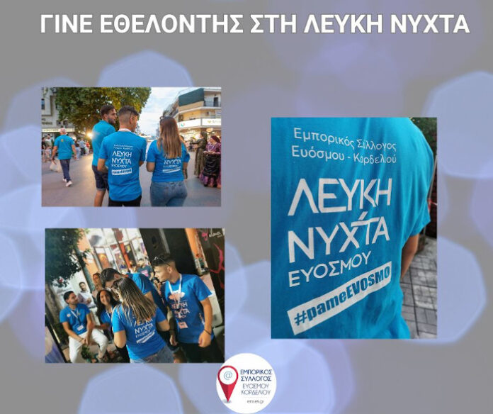 Γίνε εθελοντής στη Λευκή Νύχτα Ευόσμου! By Join 8 μήνες Ago Μοιραστείτε το Πάρε μέρος κι εσύ στη μεγάλη αυτή διοργάνωση στον Εύοσμο! Γίνε ενεργό μέλος των εκδηλώσεων και ζήσε την εμπειρία της Λευκής Νύχτας στο backstage!!! Στις 13 Σεπτεμβρίου, σε θέλουμε μαζί μας! Μπορείς να καλέσεις στα 2316016031, 6949453885 ή να συμπληρώσεις την παρακάτω φόρμα https://linktr.ee/Emsek Σάββατο 13 Σεπτεμβρίου 18:00 – 24:00 Πάμε Εύοσμο, Πάμε Λευκή Νύχτα! *Θα δοθεί βεβαίωση εθελοντή Από τον Εμπορικό Σύλλογο Ευόσμου Κορδελιού Categories: ΕΛΕΥΘΕΡΙΟ ΚΟΡΔΕΛΙΟ, ΕΥΟΣΜΟΣ, ΝΕΑ Tags: ΕΘΕΛΟΝΤΗΣΛΕΥΚΗ ΝΥΧΤΑ Related Content «Ο Φύλακας των Βιβλίων» συνεχίζει το ταξίδι του – Νέα παράσταση στη Δημοτική Βιβλιοθήκη Ελευθερίου Κορδελιού By Join 15/04/2026 Δήμος Κορδελιού-Ευόσμου: Αστυνομική επιχείρηση – 24 “καμπάνες” για παραβάσεις του ΚΟΚ By Join 15/04/2026 Δήμος Αμπελοκήπων – Μενεμένης: «Πλημμυρίζει» λουλούδια και φυτά – Ανθοέκθεση για 10 μέρες By Join 14/04/2026
