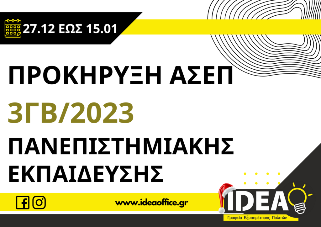 Η προθεσμία ηλεκτρονικών αιτήσεων αρχίζει 27/12/2023 και τελειώνει 15/01/2024.