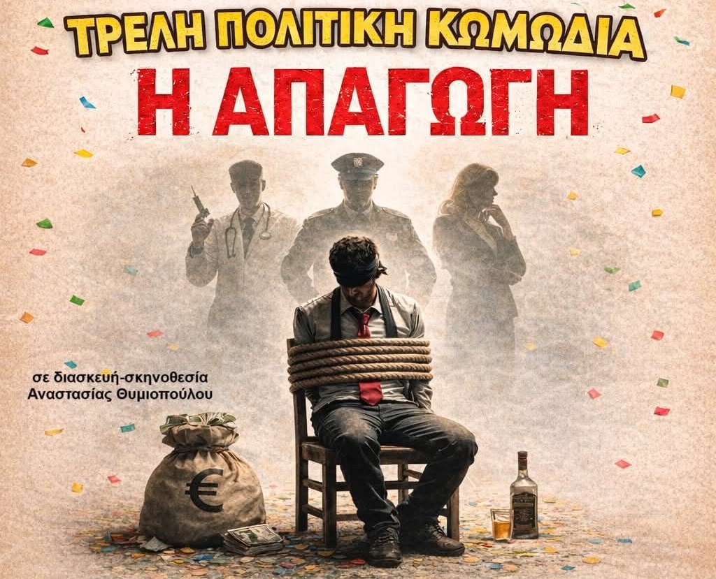 Την Κυριακή 26 Απριλίου στις 18:30μμ στο Πολυλειτουργικό Κέντρο Μ. Θεοδωράκης στο Κορδελιό το τμήμα των Βετεράνων της ομάδας μας ανεβάζει την «Απαγωγή».