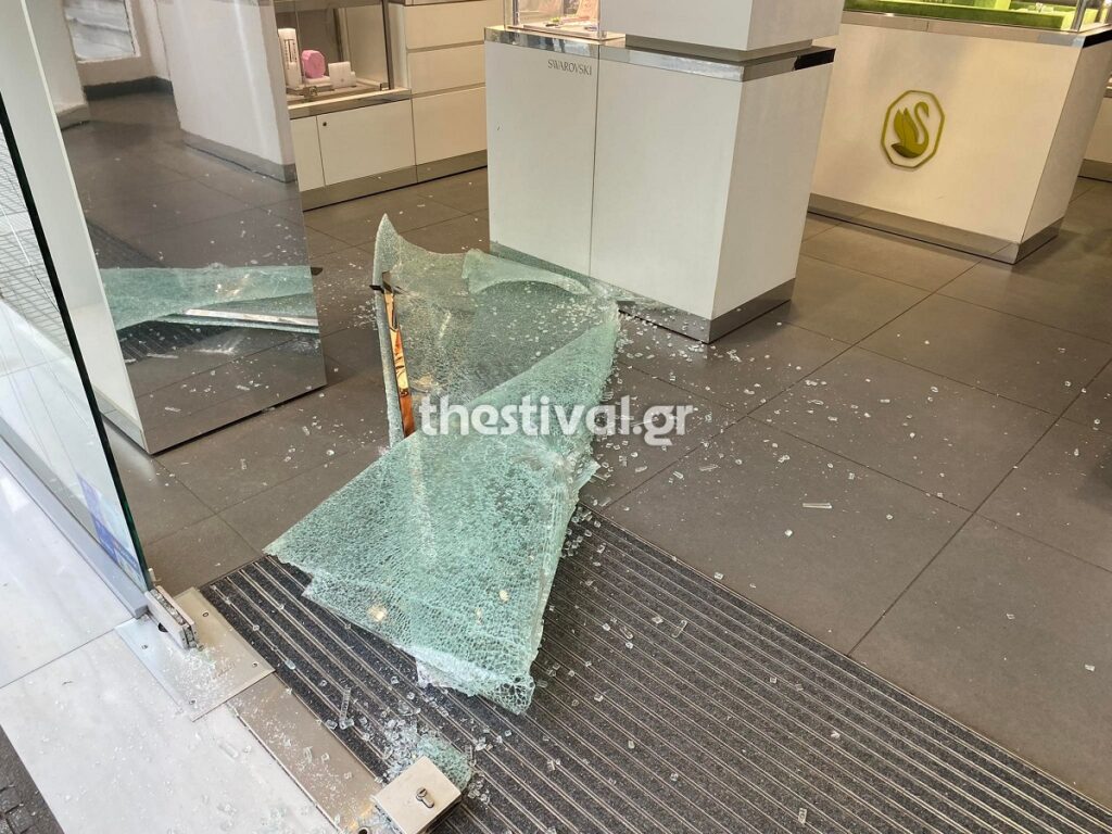 Οι άγνωστοι έσπασαν τη βιτρίνα ενός κοσμηματοπωλείου ενώ προκάλεσαν φθορές και σε δύο υποκαταστήματα τραπεζών σε Τσιμισκή και Ίωνος Δραγούμη.