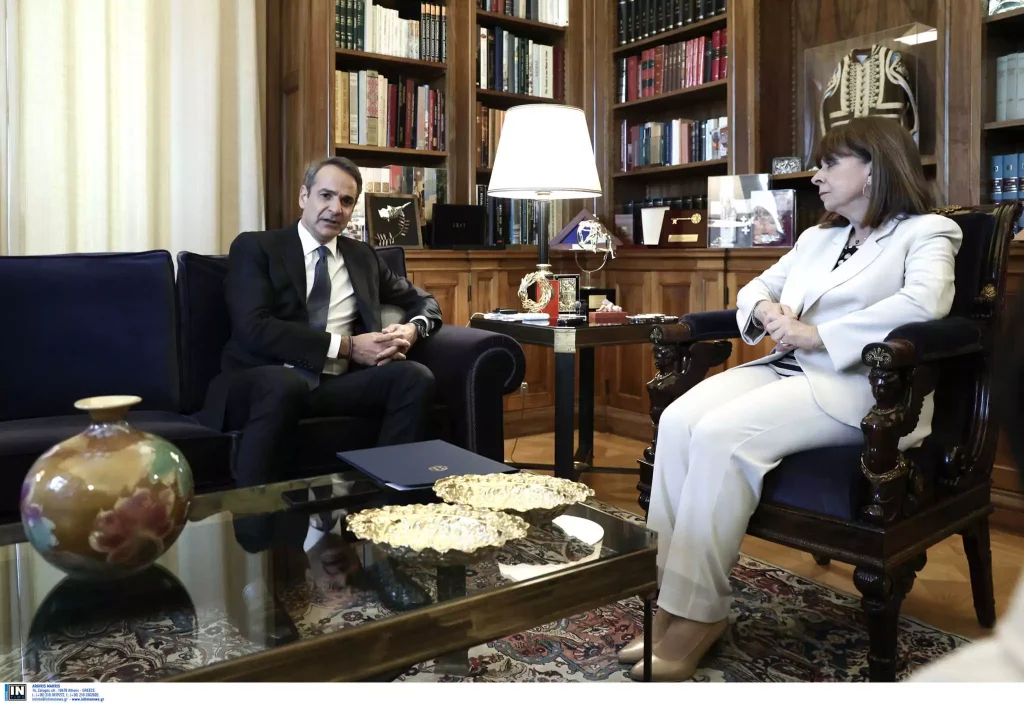 Έφτασε η ώρα για να προκηρυχθούν οι εκλογές της 21ης Μαΐου 2023, καθώς ο Πρωθυπουργός Κυριάκος Μητσοτάκης βρέθηκε στο Προεδρικό Μέγαρο, όπου ζήτησε από την Πρόεδρο της Δημοκρατίας, Κατερίνα Σακελλαροπούλου, τη διάλυση της Βουλής. Η συνάντηση τους διήρκεσε μισή ώρα.