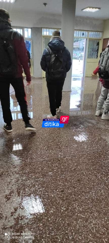 Μάθημα μέσα στα νερά που από την οροφή έπεσαν στο εσωτερικό του 2ου ΕΠΑΛ καλούνται να κάνουν σήμερα οι μαθητές του σχολείου.