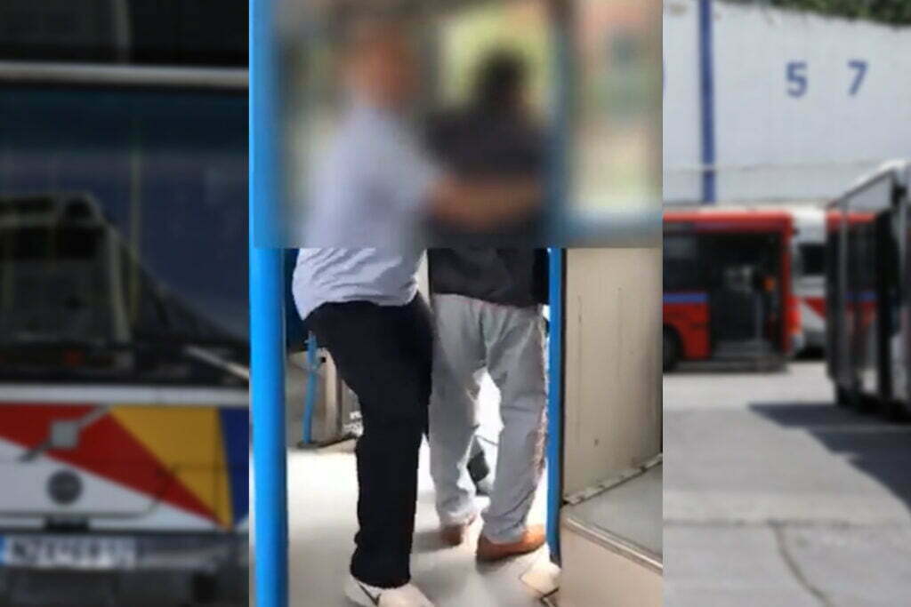 Ο οδηγός του λεωφορείου διέκοψε το δρομολόγιο, άνοιξε τη μεσαία πόρτα και άρχισε να επιτίθεται σε έναν ηλικιωμένο επιβάτη. Από τα όσα ακούγονται στο βίντεο, την αντίδραση του οδηγού προκάλεσε το γεγονός ότι ο επιβάτης νωρίτερα έβρισε τη μάνα του.