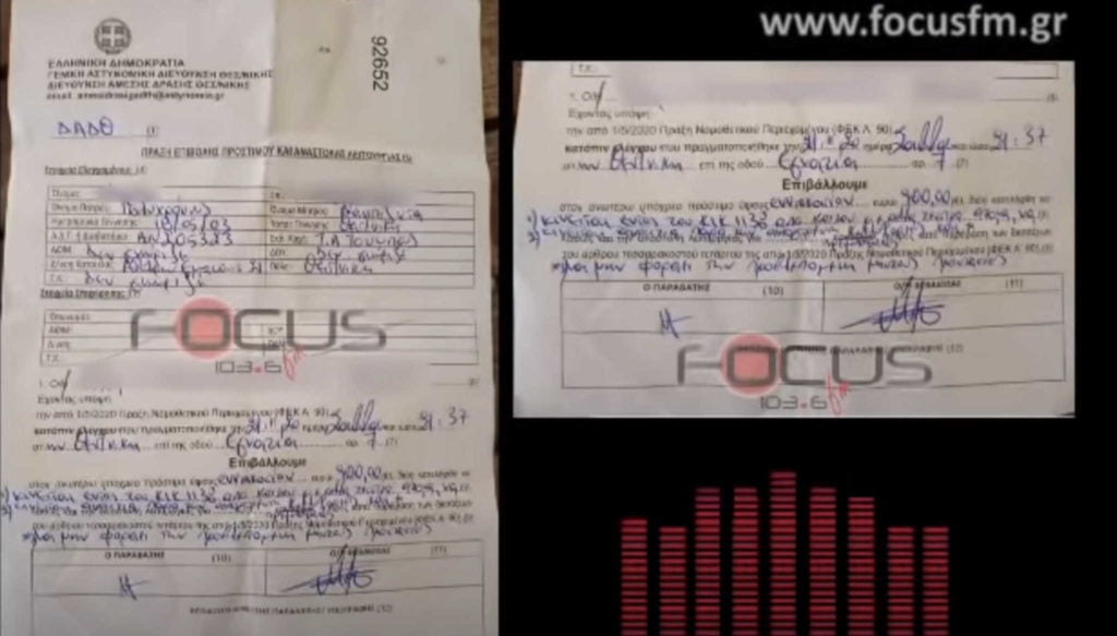 Σύμφωνα με την καταγγελία του άνεργου πατέρα της πολύτεκνης οικογένειας στη Θεσσαλονίκη, το βράδυ του περασμένου Σαββάτου (21.11.2020) επιβλήθηκε συνολικό πρόστιμο 900 ευρώ στην 17χρονη κόρη του, για μη χρήση μάσκας, για άσκοπη μετακίνηση και για παραβίαση απαγόρευσης της κυκλοφορίας μετά της 9.00 το βράδυ.