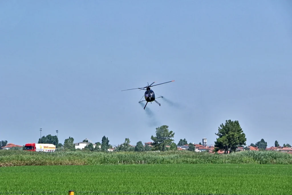 Οι ψεκασμοί θα γίνουν από αέρος, με ειδικού τύπου ελικόπτερο και θα καλύψουν συνολικά έκταση ως 80.000 στρεμμάτων του μπλοκ των εκτάσεων της περιοχής των ρυζοκαλλιεργειών της Θεσσαλονίκης και της Ημαθίας ανάλογα με τις επικρατούσες κλιματολογικές συνθήκες. Επισημαίνεται ότι για τους ψεκασμούς αυτούς έχουν εκδοθεί οι απαιτούμενες άδειες από τα αρμόδια Υπουργεία Υγείας και Αγροτικής Ανάπτυξης και Τροφίμων.
