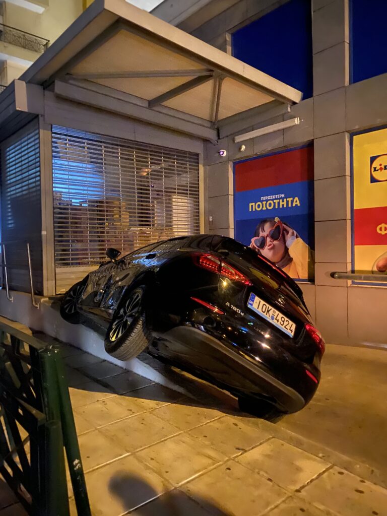 Ένα σοκαριστικό τροχαίο ατύχημα συνέβη έξω από κατάστημα της αλυσίδας Lidl στον Εύοσμο τα ξημερώματα του Σαββάτου, όπου ένα μαύρο αυτοκίνητο βρέθηκε “καρφωμένο” στην πρόσοψη του καταστήματος. Οι εικόνες από το σημείο δείχνουν το όχημα σε μια επικίνδυνη θέση, έχοντας χτυπήσει την πρόσοψη του καταστήματος και έχοντας υποστεί σοβαρές υλικές ζημιές.