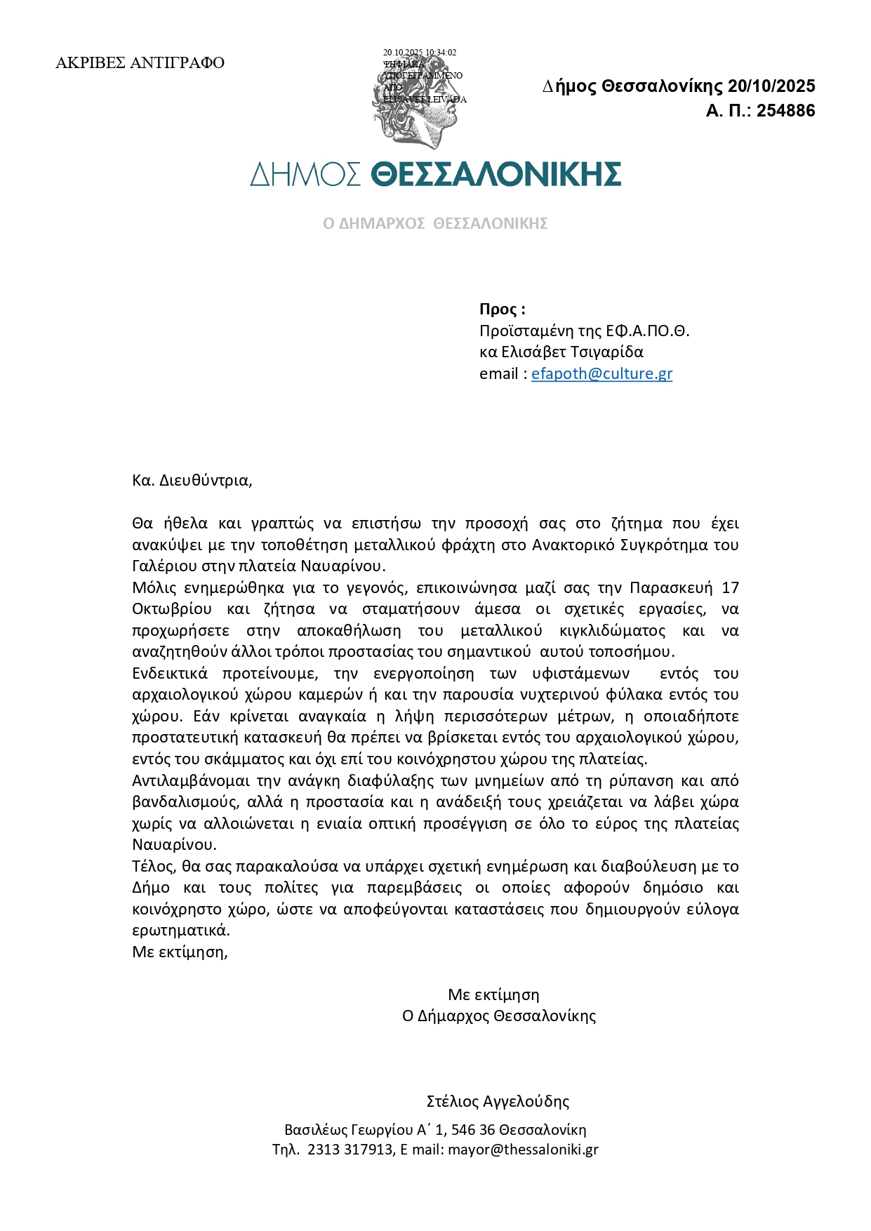 Δείτε την επιστολή του δημάρχου Θεσσαλονίκης: