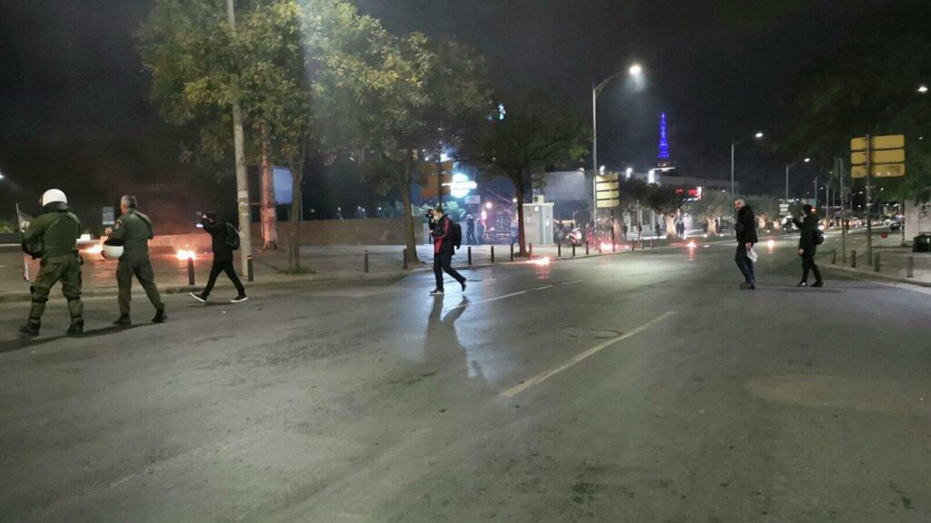 Οι διαδηλωτές πέταξαν μολότοφ και αντικείμενα, σύμφωνα με το thesstoday.gr.