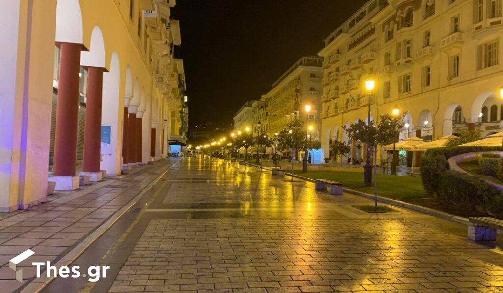 Απόλυτη ερημιά επικρατούσε λίγη ώρα μετά τα μεσάνυχτα της Παρασκευής στη Θεσσαλονίκη στην πρώτη νύχτα μετά το μίνι lockdown που επιβλήθηκε εξαιτίας του κορονοϊού, την ώρα που οι ΜΕΘ covid έχουν πληρότητα 100%.