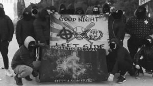 Σήμερα το πρωί, στάθηκαν μπροστά στην πύλη και αφού έδιωξαν μαθητές και εκπαιδευτικούς για «τηλεκπαίδευση», φώναξαν εθνικιστικά συνθήματα, χαιρέτησαν ναζιστικά, φωτογραφήθηκαν και πάλι με τα μισητά φασιστικά σύμβολα και στη συνέχεια ανάρτησαν τις φωτογραφίες στο διαδίκτυο, για να παρουσιάσουν την εικονική πραγματικότητα πως δήθεν μάχονται κατά των «αριστερών». Μετά από λίγο αποχώρησαν.
