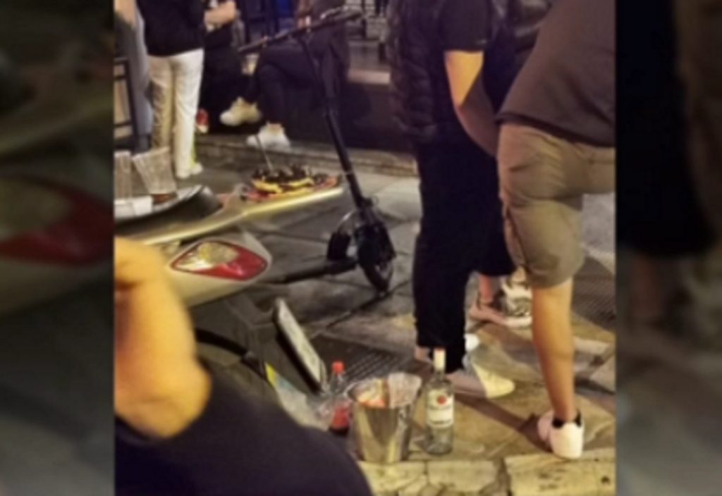 Ήταν λίγο μετά τα μεσάνυχτα όταν οι χώροι έξω από πολλά μαγαζιά γέμισαν κόσμο, που με το ποτό και το κοκτέιλ στο χέρι, συζητούσαν και είχαν μετατρέψει τα πεζοδρόμια σε μπαρ και τα μηχανάκια σε… τραπέζια.