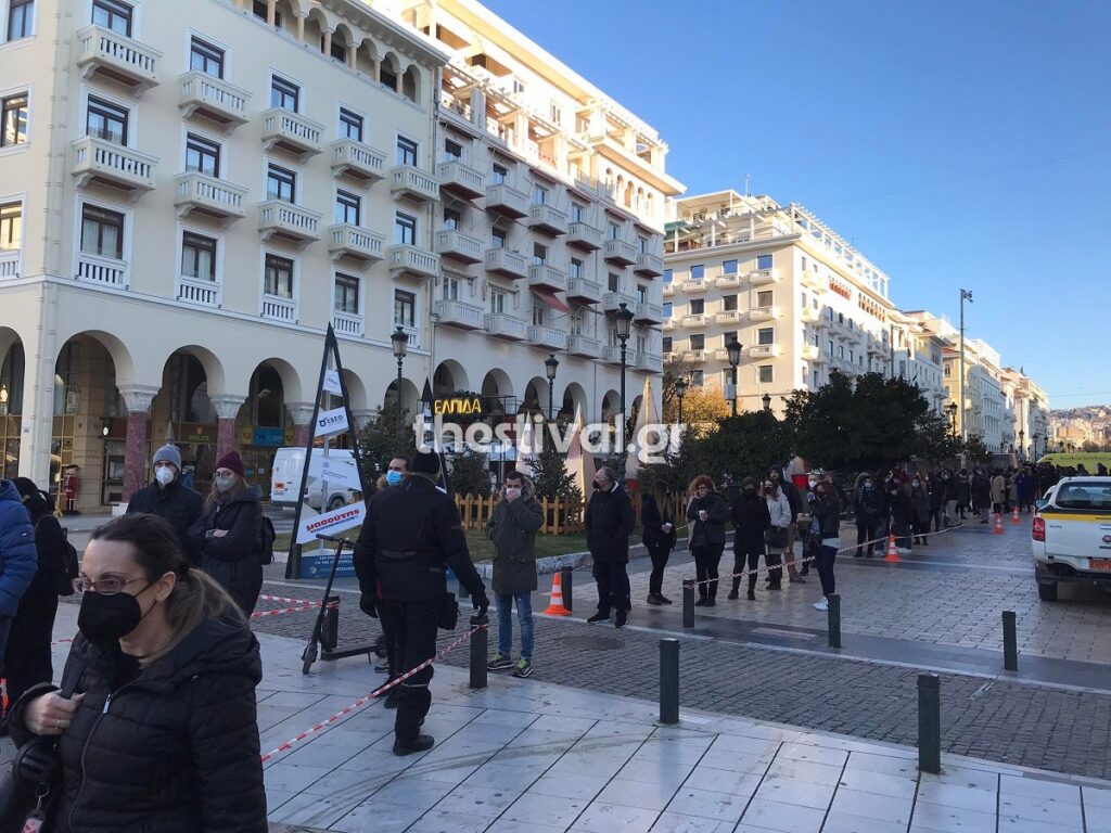 Ουρές για μια ακόμα φορά έχουν σχηματιστεί από νωρίς το πρωί της Πέμπτης στην πλατεία Αριστοτέλους, στο κέντρο της Θεσσαλονίκης, όπου βρίσκονται κινητές μονάδες εμβολιασμού.