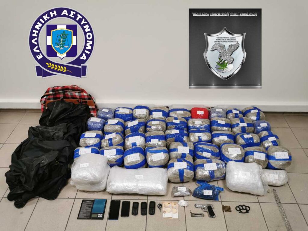 Συγκεκριμένα, χθες το απόγευμα, στο κέντρο της πόλης, αστυνομικοί του Τμήματος Γενικών Υποθέσεων της Υποδιεύθυνσης Δίωξης Ναρκωτικών Θεσσαλονίκης με τη συνδρομή συναδέλφων τους της Ο.Π.Κ.Ε ακινητοποίησαν για έλεγχο το αυτοκίνητο που οδηγούσε ο 27χρονος και στην έρευνα που πραγματοποιήθηκε βρέθηκαν στο εσωτερικό του οχήματος και κατασχέθηκαν 2 ταξιδιωτικοί σάκοι με 23 δέματα κάνναβης, συνολικού βάρους 45 κιλών και 851 γραμμαρίων.