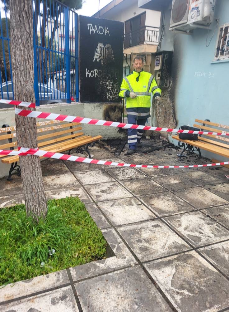 Το συμβάν δημοσιοποίησε ο αντιδήμαρχος Καθημερινότητας και Υποδομών, Θεόδωρος Κατσούκας, παραθέτοντας και φωτογραφίες από τις υλικές ζημιές που προκλήθηκαν τόσο στους τοίχους της αυλής όσο και σε έναν ηλεκτρολογικό πίνακα.