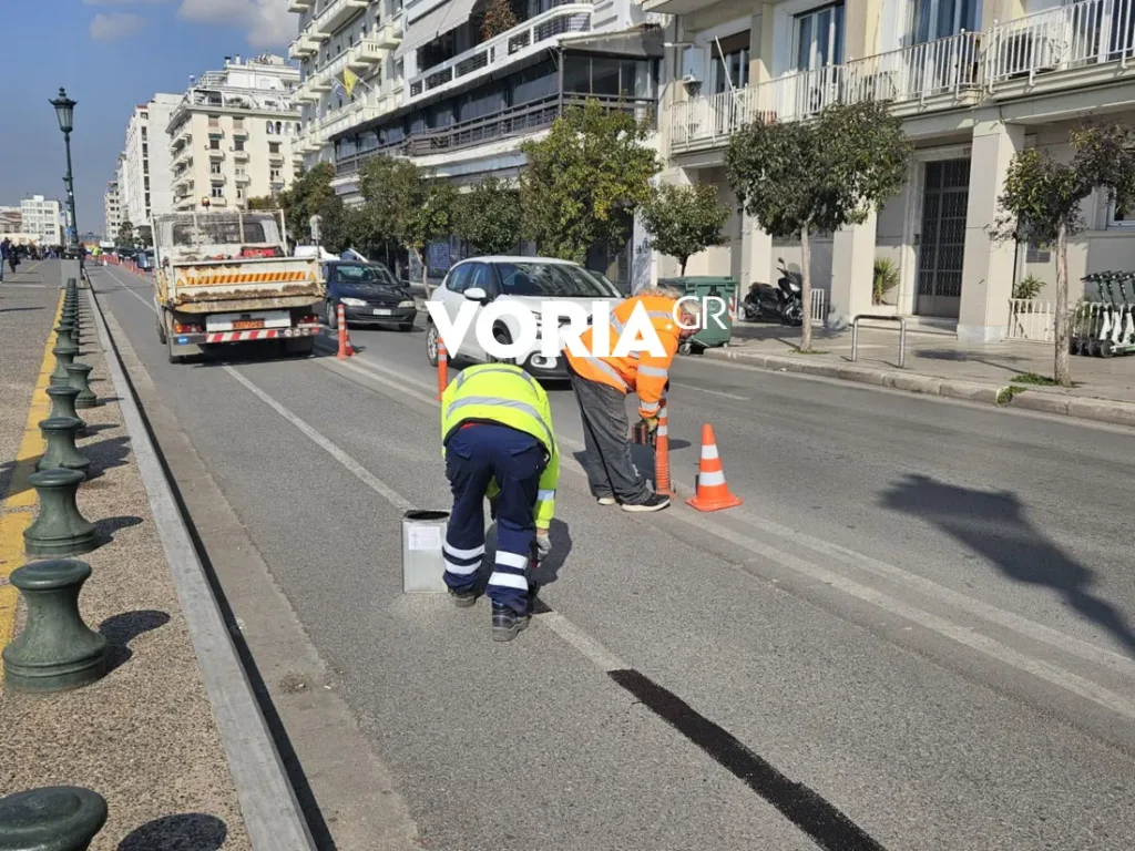 Νωρίς το πρωί, συνεργείο της Διεύθυνσης Βιώσιμης Κινητικότητας του δήμου Θεσσαλονίκης σβήνει με βαφή την κίτρινη μπογιά που οριοθετούσε τον ποδηλατόδρομο στο οδόστρωμα και απομακρύνει τα πασαλάκια.